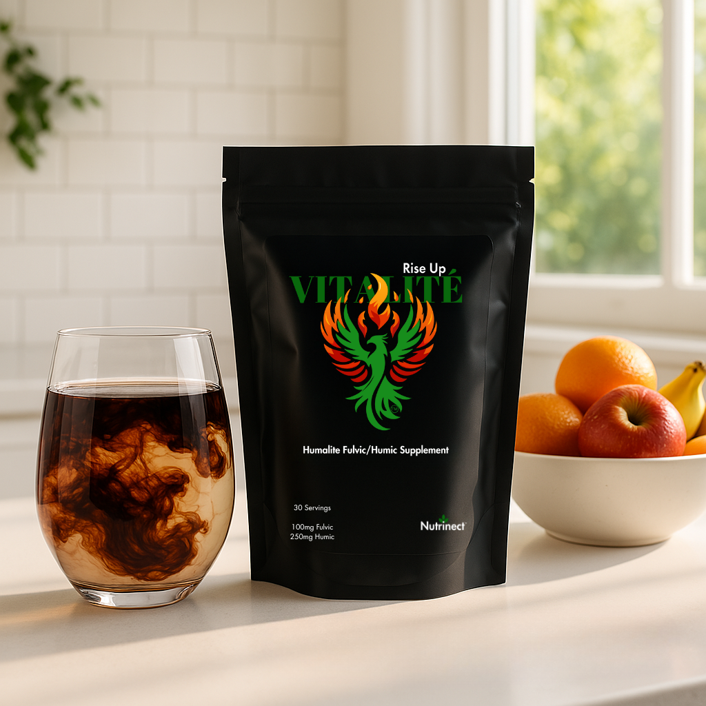 Vitalité Humalite bridges it with nature's original transport system — purified fulvic and humic complexes from premium Humalite — ensuring minerals don't just enter the body... they perform where it matters most.